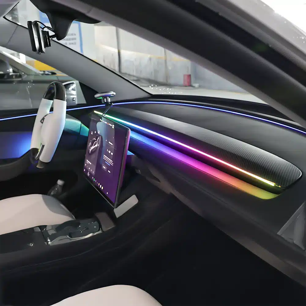Of je nu overdag rijdt of ’s avonds in stijl aankomt: met deze LED-dashboardverlichting geef je jouw Tesla een moderne, luxueuze uitstraling die past bij jouw persoonlijke rijbeleving.