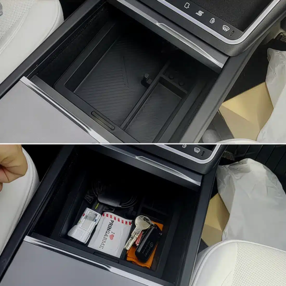 Speciaal ontworpen voor het 2024+ Model 3 Highland, biedt deze opberglades de perfecte oplossing om dagelijkse benodigdheden netjes en binnen handbereik te houden – zonder rommel of schuivende spullen.